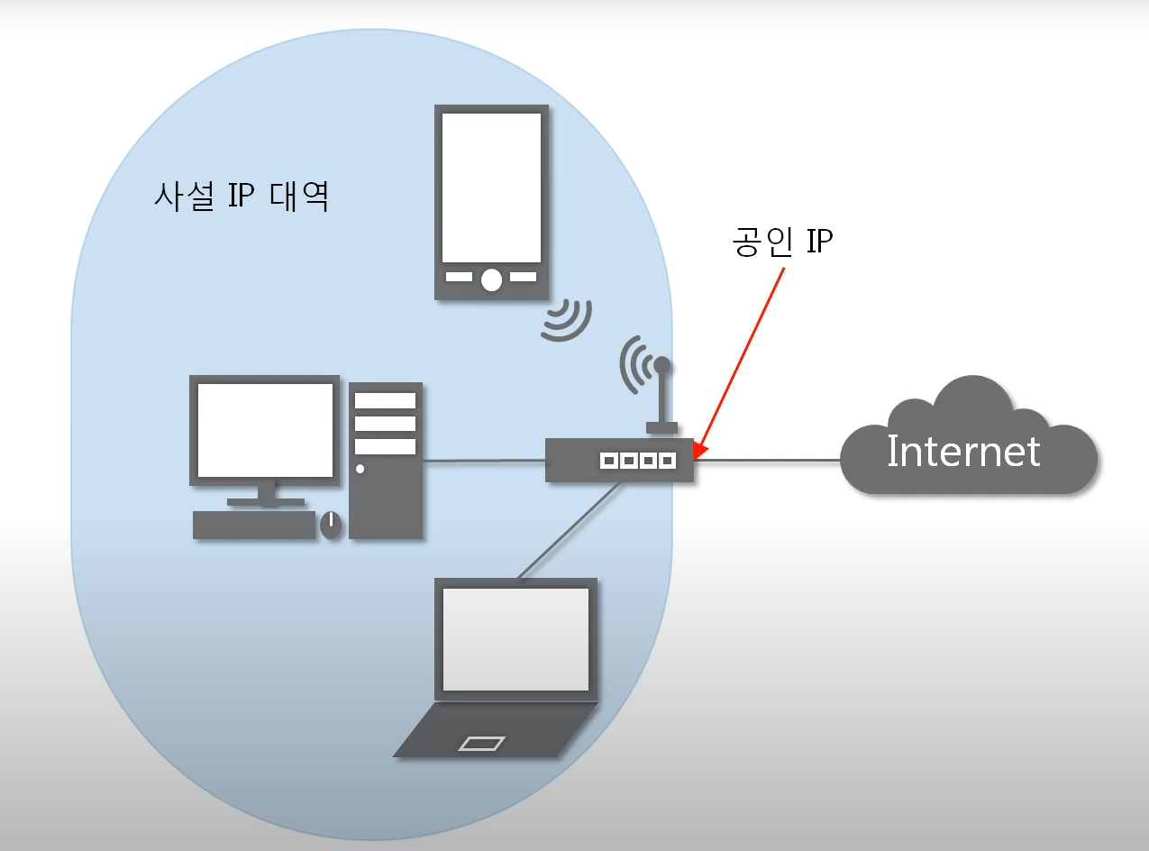 - 사설IP를 사용하는 장비들이 네트워크 통신을 할때 무조건 공인IP로 바꿔서 통신을 한다.(낭비를 막는다.)